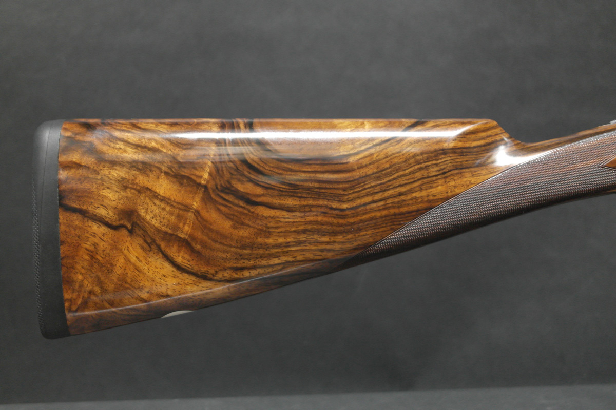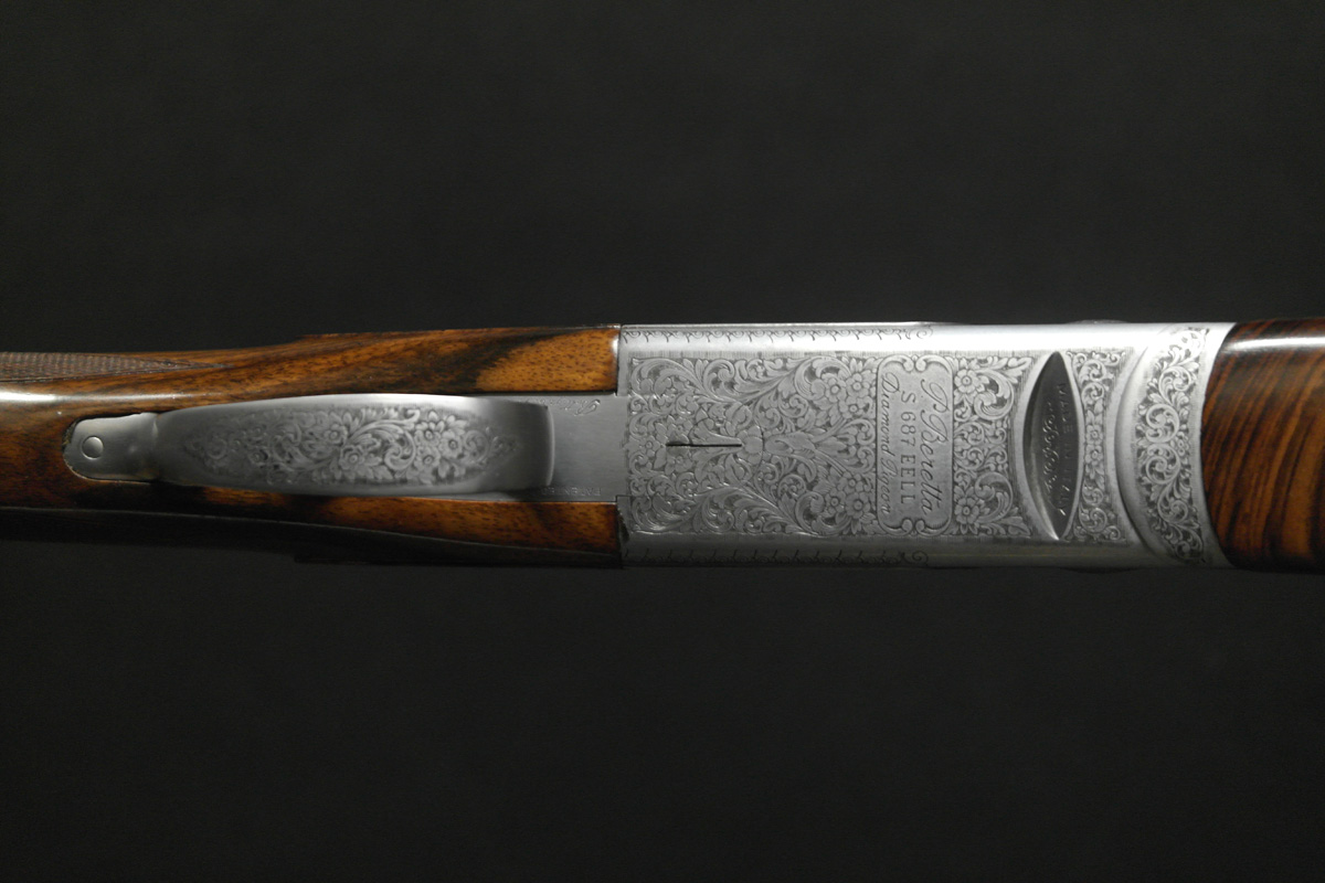 A lovely and rarely seen gorgeously figured straight hand stocked Beretta 687 EELL Diamond Pigeon 12g. Fixed choke at 1/4 & 1/2, 3″ chambers, suitable for standard steel shot.