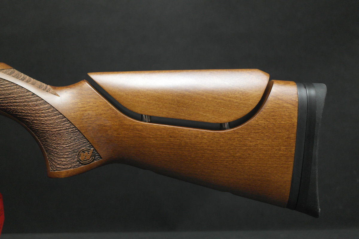 Striking stock design featuring stippled grips and aesthetic cooling vents. It’s one of the only spring guns in the Weihrauch range to feature an adjustable stock with an adjustable rubber butt pad and therefore the rifle will fit you like a glove. With the adjustable height cheek piece, this rifle was built for scope use. It’s a substantial rifle and the heavy barrel shroud makes it steadier on the aim and mutes the effect of the spring piston recoil properties. As with the majority of the range, the 98 is fitted with the highly adjustable Rekord trigger unit. Now comes as standard with threaded 1/2″ UNF barrel and supplied with threaded barrel weight.