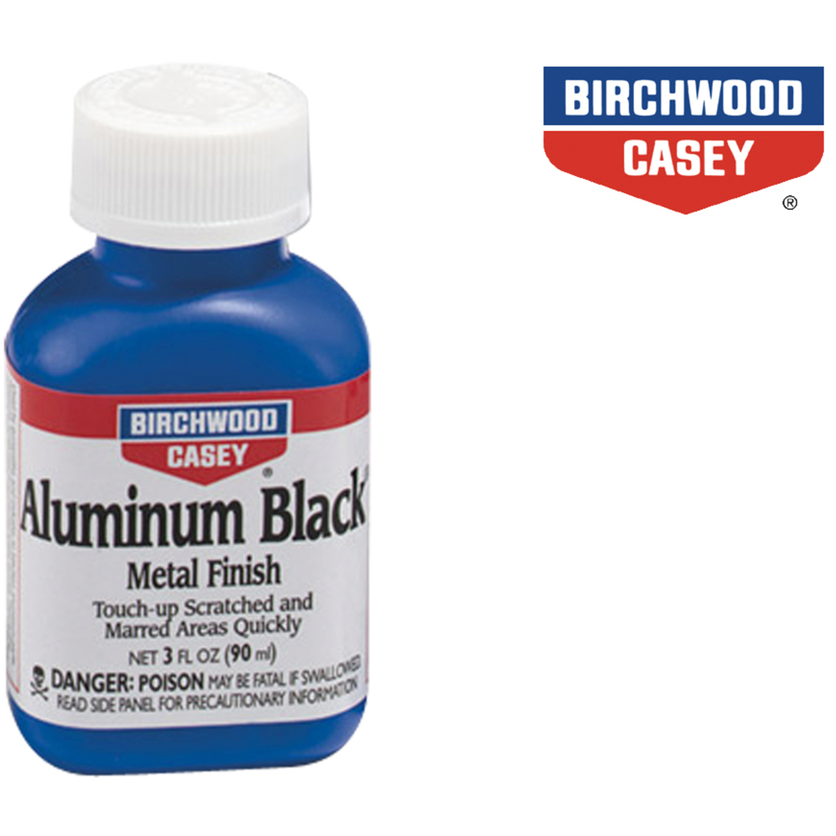 The room temperature chemical used by gunsmiths and industry to blacken aluminum parts. Restores scratched and marred areas quickly. Fast-acting liquid is easy to apply with no dimensional change. Color will vary from deep gray to black depending on alloy. Aluminum Black Metal Finish is also excellent for blackening name plates, plaques, trophies and other engraved items.