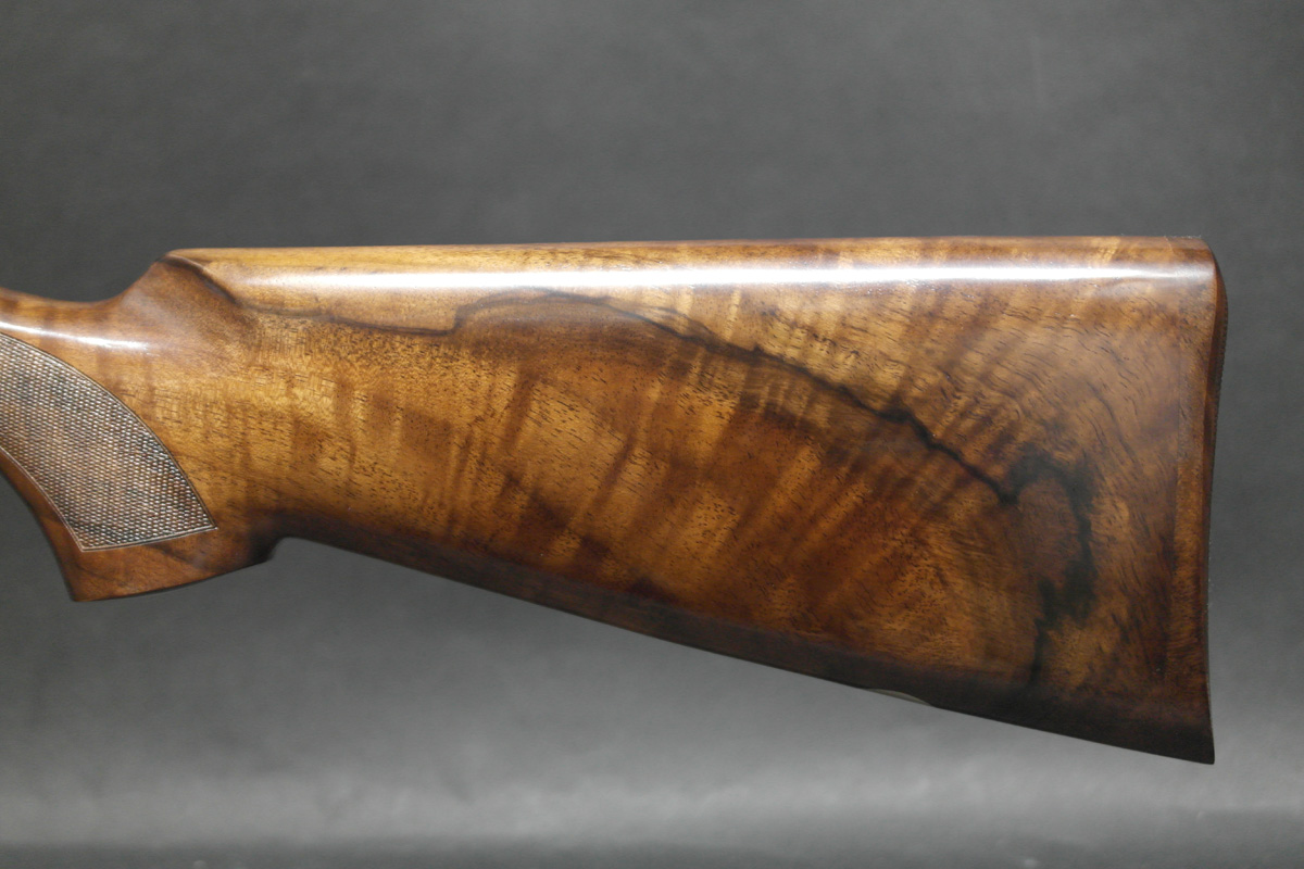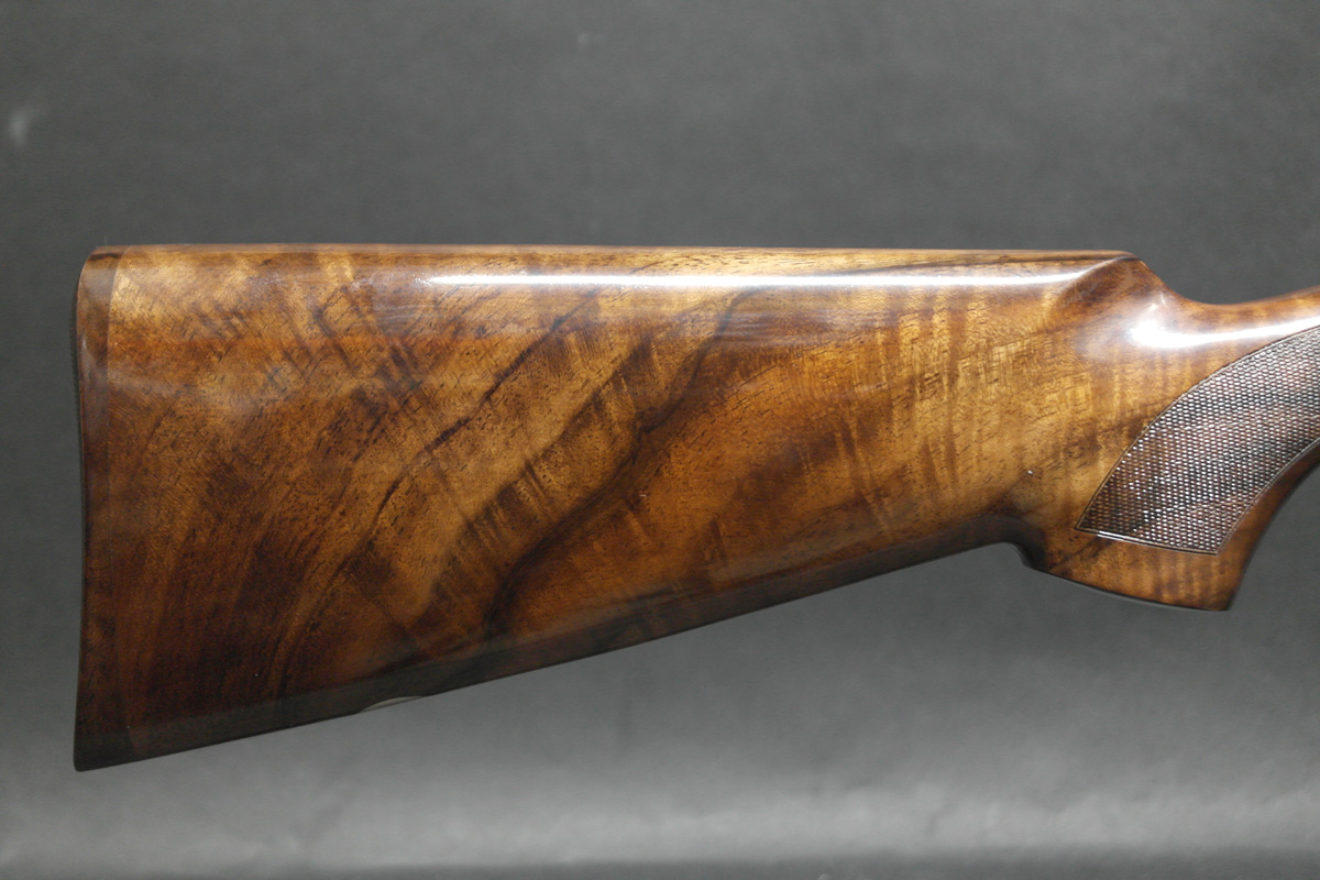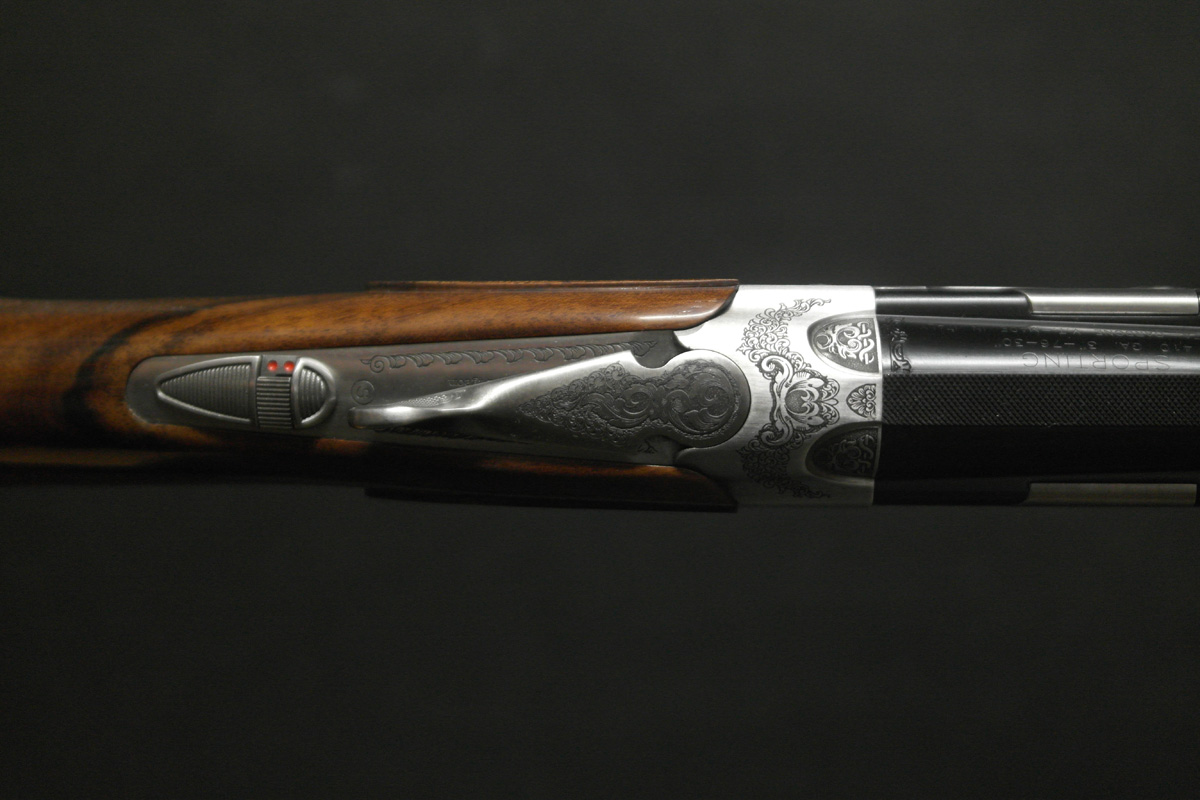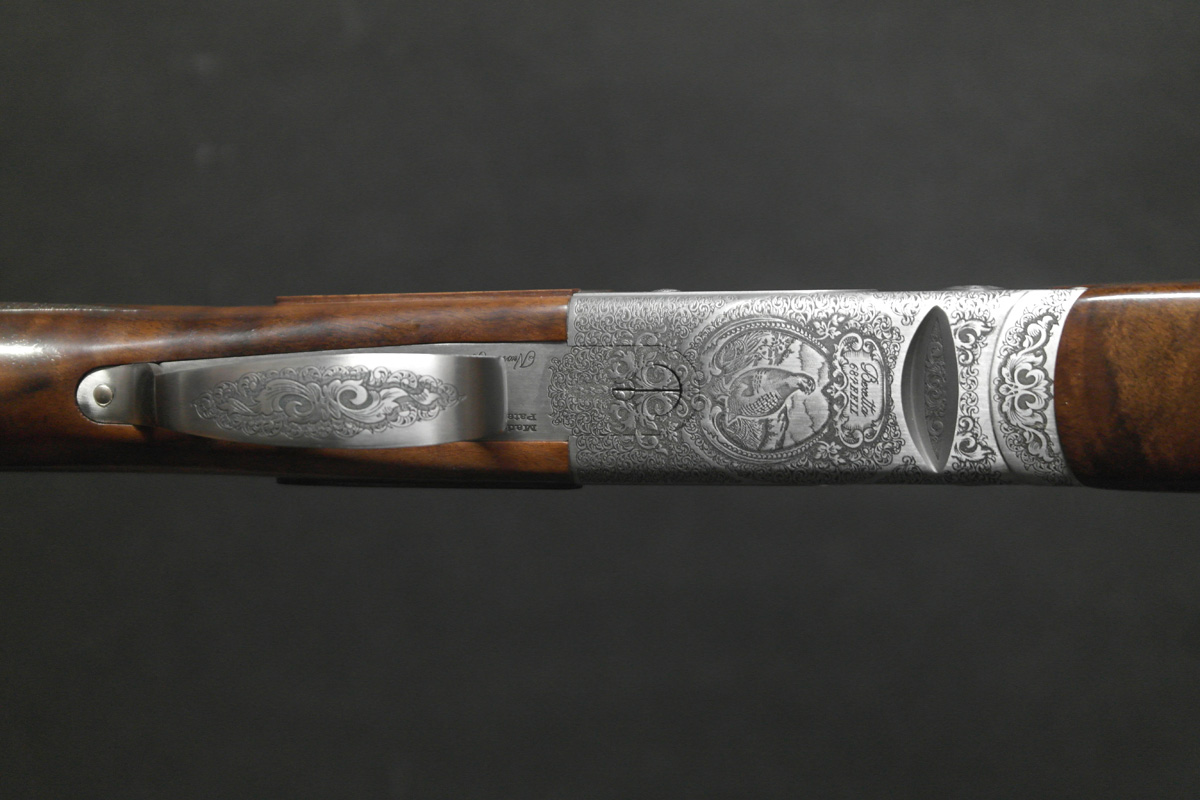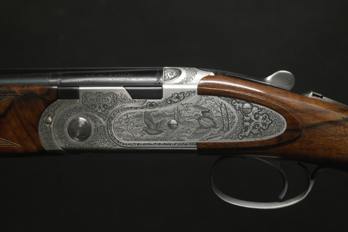A rarely found 410 gauge Beretta 687 EELL – One of the finest over unders available from the renown 680-series. Built with elegant sideplate action, this premium model provides an extended canvas for new style lavish scroll and game scene engraving. In addition to sophisticated engravings the 687EELL boasts a select hand finished and hand chequered walnut stock. Presented in premium Beretta case.