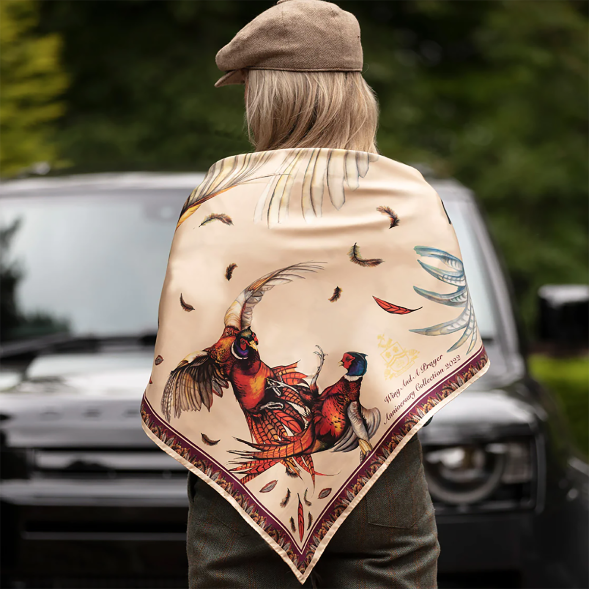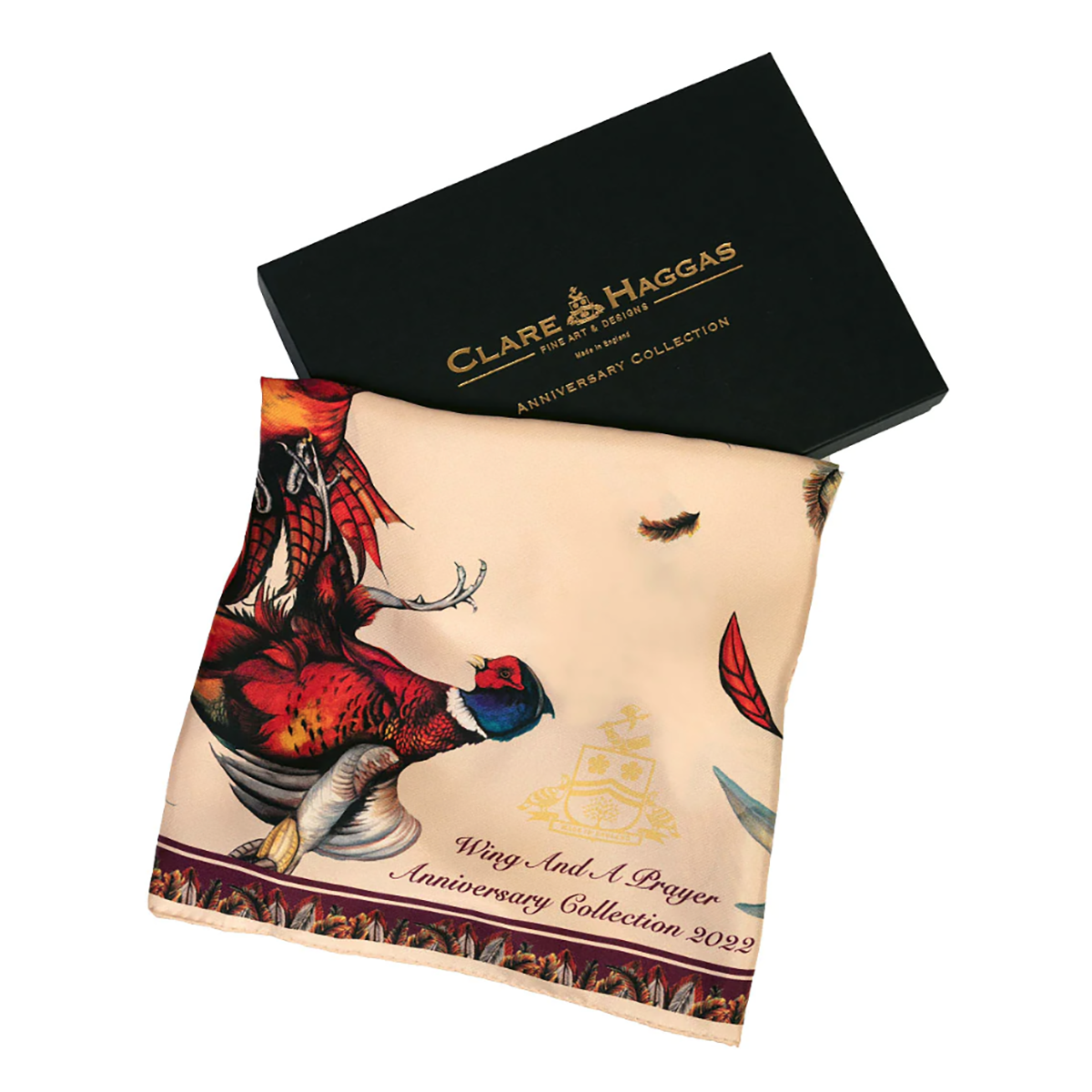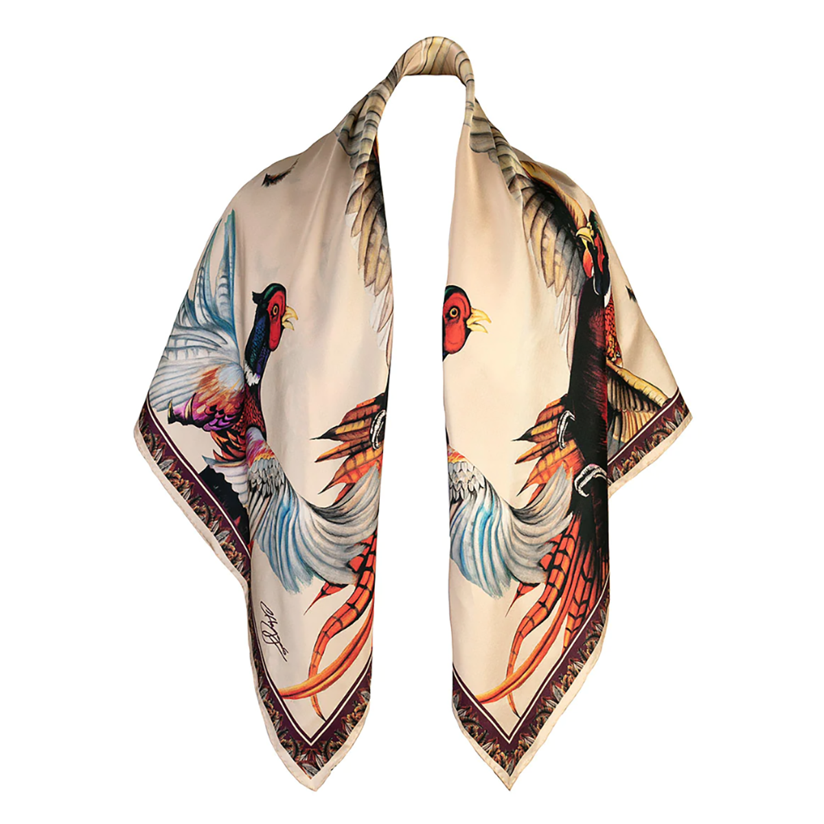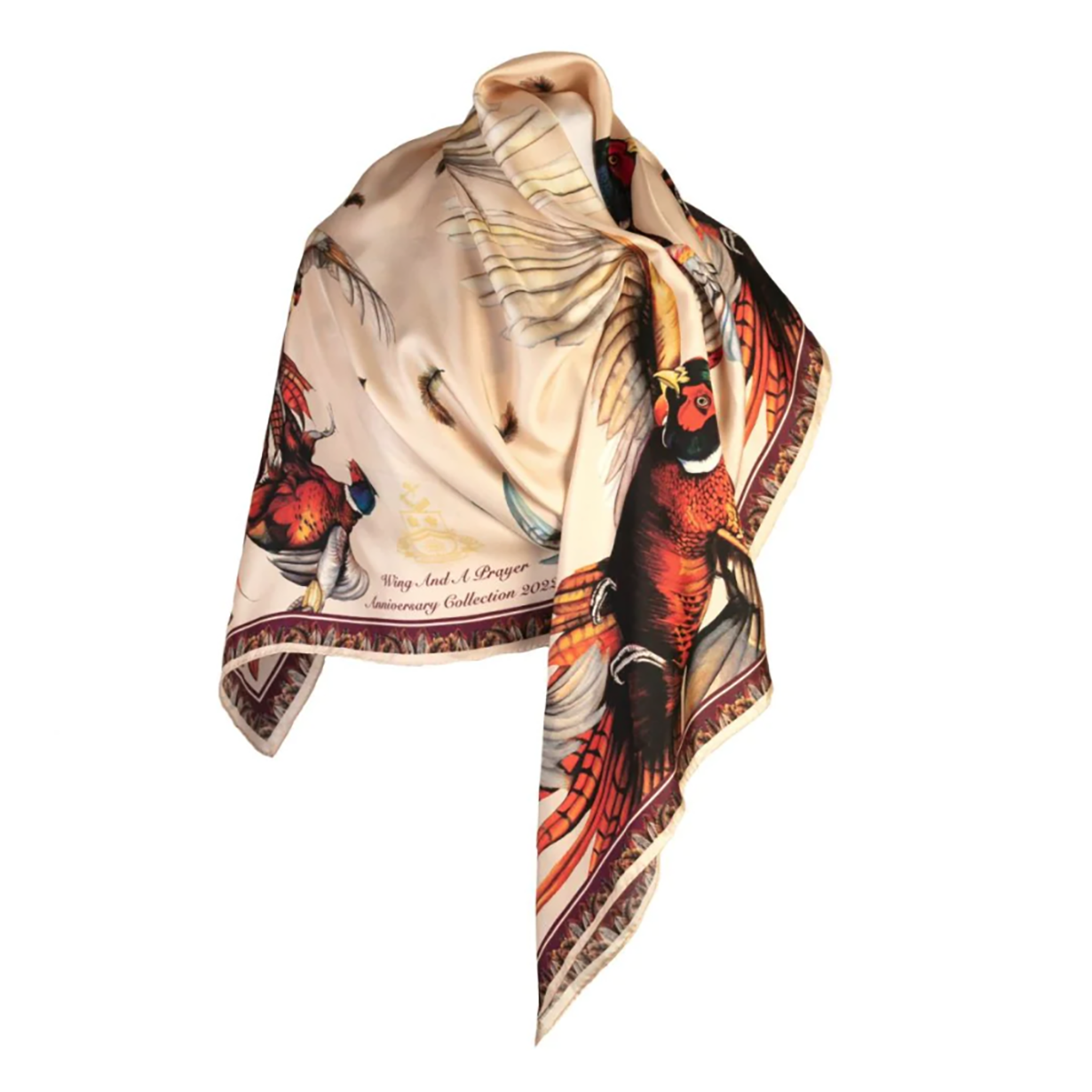 Clare Haggas A Wing & A Prayer Large Square Silk Scarf – Champagne & Mulberry
