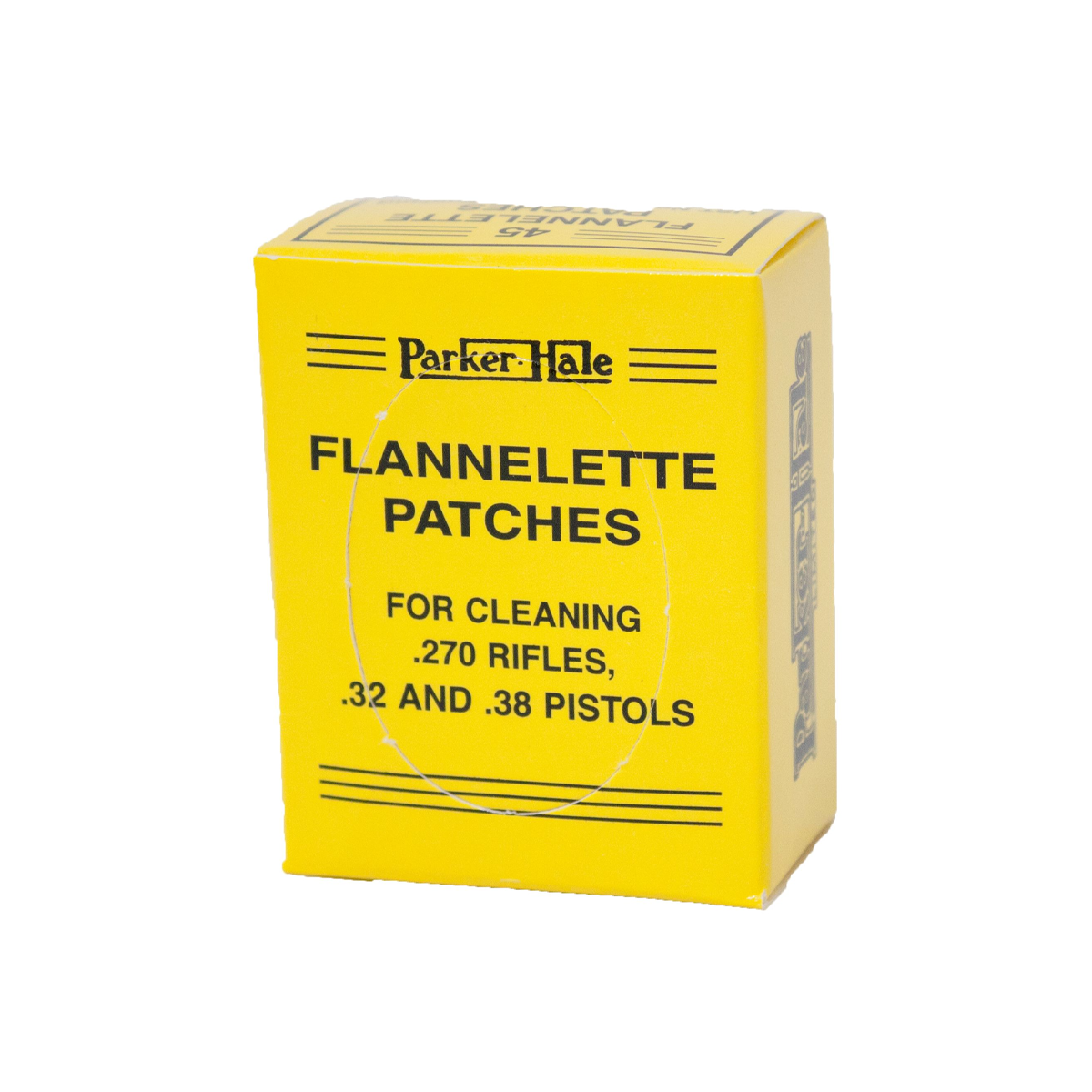 Parker Hale Flannelette cut patches for rifles and handguns with card dispenser packaging.